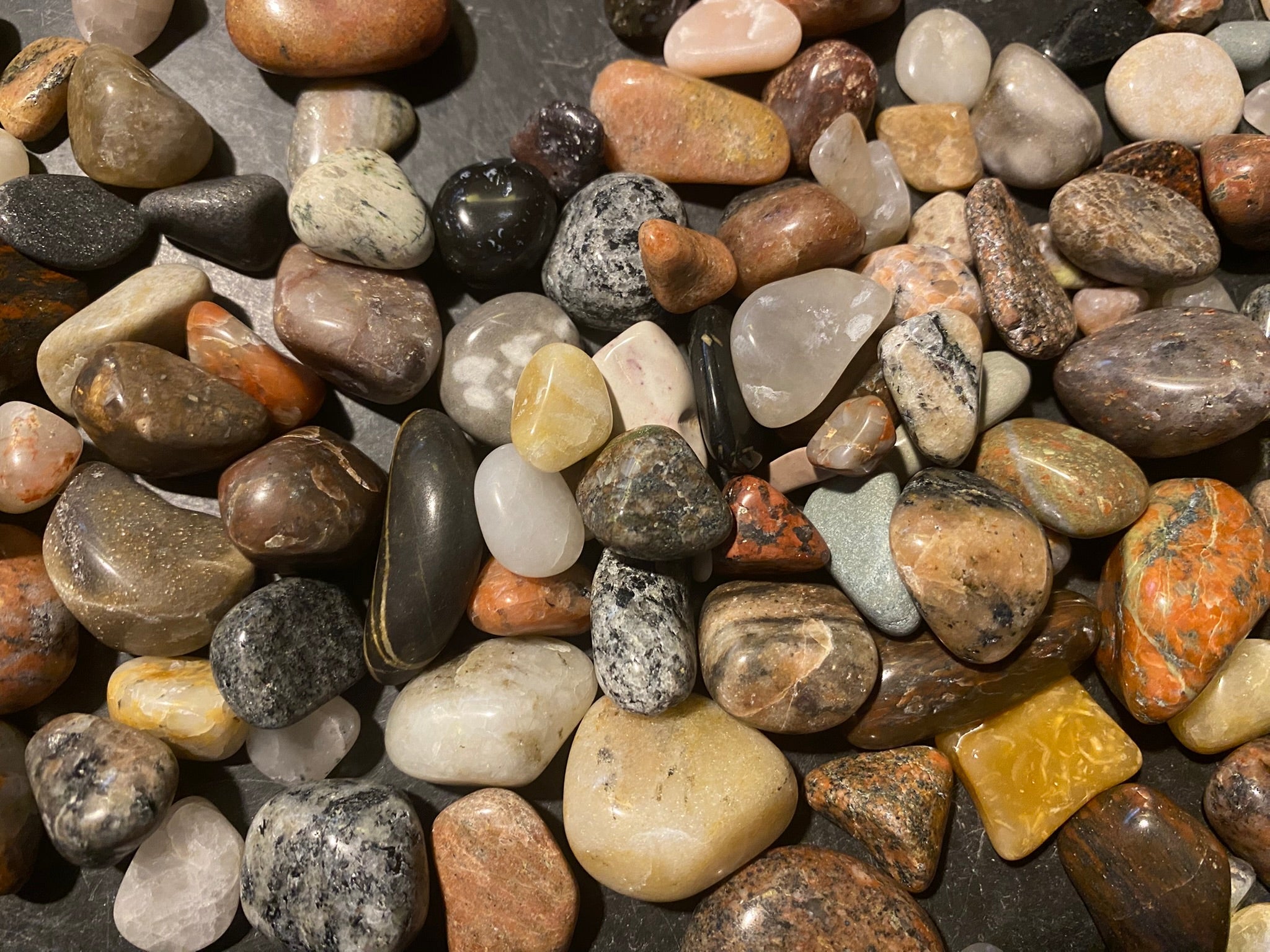 Hver sten er nøje udvalgt og samlet på danske strande, hvorefter den har gennemgået en grundig poleringsproces: først 4 ugers tromling med forskellige slibemidler og derefter tromles de i en uge med poleringsmiddel for at fremhæve stenens naturlige skønhed og glød.